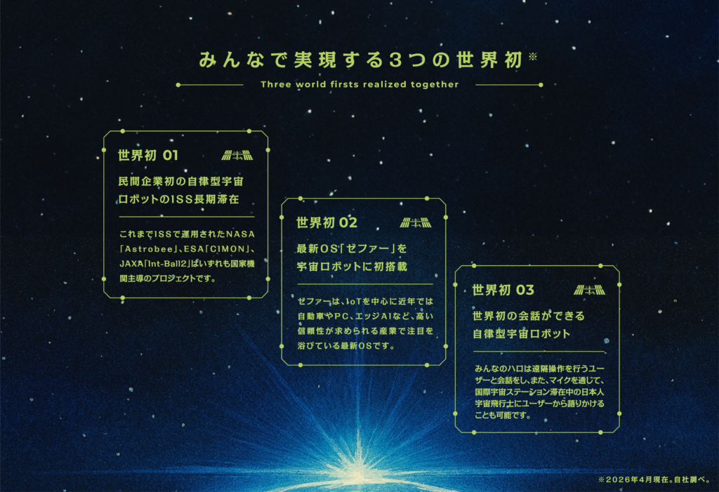 ※「みんなのハロ」打上げおよび国際宇宙ステーション滞在は、JAXAの「きぼう」有償利用制度を使用します。